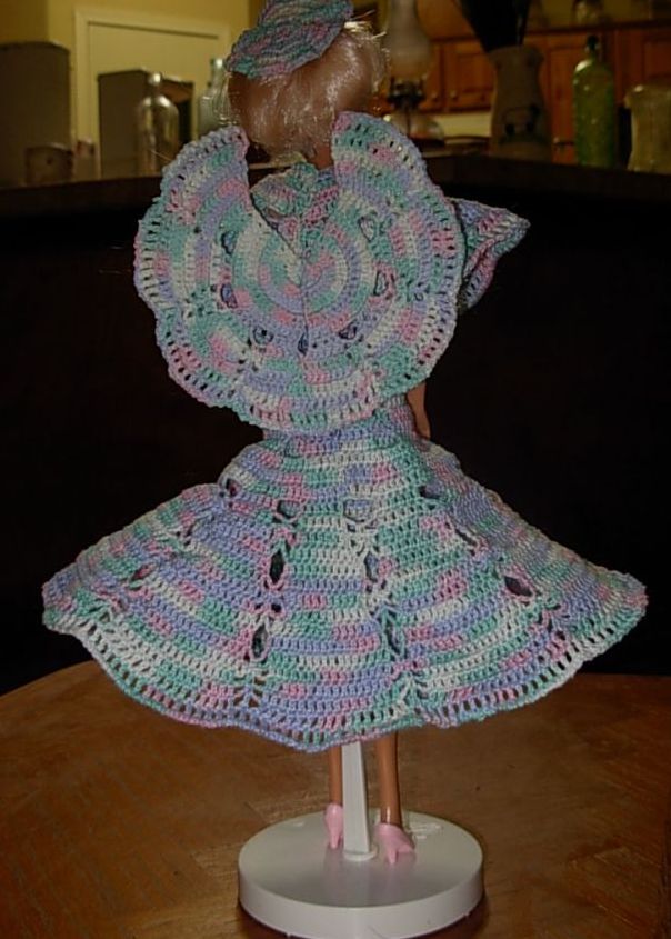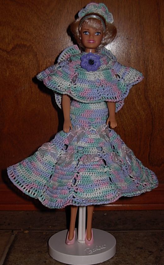 It actually hasn't been THAT long since I added my 3rd crochet page to my refuge. But I've been a busy little crocheter since then and find I actually have enough new items to make TWO new crochet pages! It is August 2009 as I write this, and this is the first of these two new pages. Please be sure to look at both pages -- I have so many projects I am anxious to show you, especially my DOLLS (this page will feature Barbies, while page 5 will have four of my larger dolls) and an afghan I sort of partially designed (also on the next page!) In an attempt to show my projects in approximate chronological order (VERY approximate), I'll begin with two earlier projects that somehow seem to be missing from the previous pages: