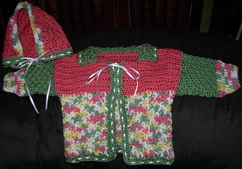 After making the Gentle Ripple baby ghan, I had enough of the pretty yarn left over to make this little jacket and matching bonnet!