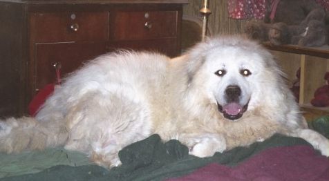 That milestone 12th birthday was not to be. My girl slipped on the kitchen floor on Nov. 18, 2009, was unable to get back up, stopped eating or going potty not long after that, didn't respond to pills prescribed by our vet (as we hoped it was just a bad case of arthritis and she would recover) and passed away a couple of feet away from me on Sat., Nov. 21st. We'll never know just what happened internally to cause this turn of events, but it doesn't matter. Knowing the cause won't bring her back. Oddly enough, it was 18 days short of what would have been her 12th birthday on Dec. 9th -- the exact same age as Tessa. There are more details about Heidi's last few days on today's entry on my blog. This just happened a little over two hours ago as I write this, and I am still in shock. People try to tell me that almost 12 is a full life expectancy for a Great Pyrenees. But she was so full of life till 3 days ago that it never entered my mind that my "Swatgirl" would not be here for her 12th birthday, or even for Thanksgiving turkey. I will love and miss her forever.